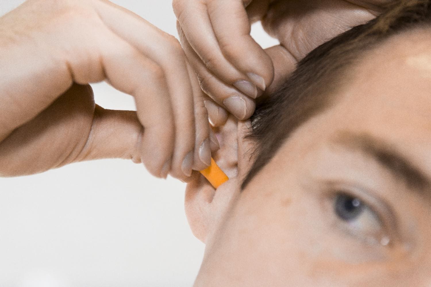 - Setzen Sie die Gehörschutzstöpsel richtig ein, indem Sie das Ohr sanft nach oben und hinten ziehen und den Stöpsel langsam einführen.