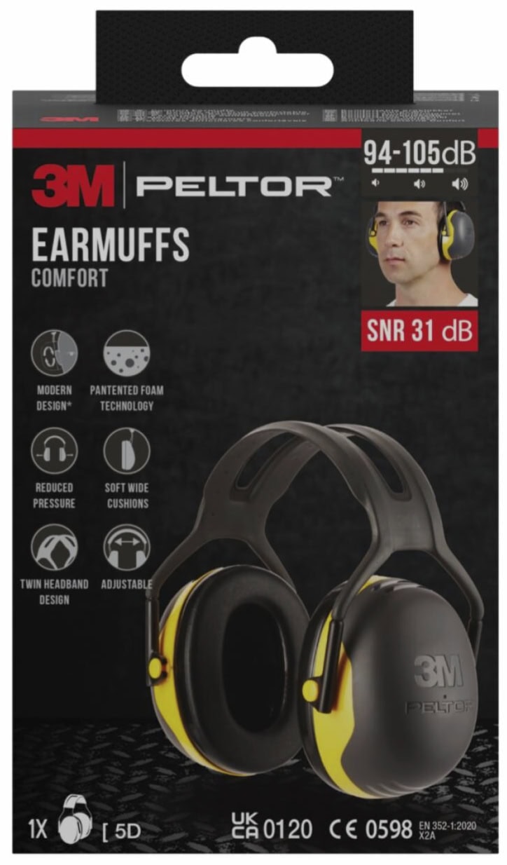 3M™ PELTOR™ X2A-1 Kapselgehörschutz, Für sehr laute Arbeitsumgebungen, SNR = 31 dB, Gelb/Schwarz, Kopfbügel, Einzelhandelsverpackung
