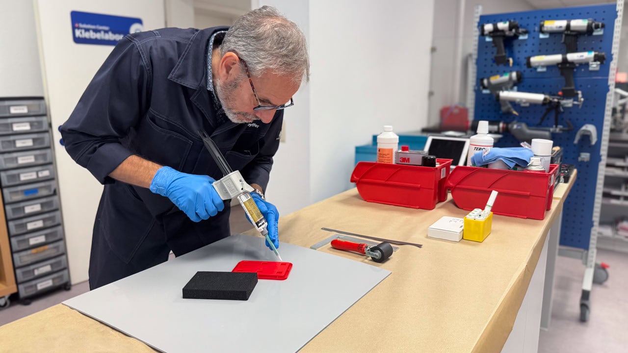 „Wer nicht klebt, der nicht gewinnt!“ Unsere Anwendungstechniker im Klebelabor haben in den letzten Jahrzehnten eine Menge Erfahrungen sammeln können.